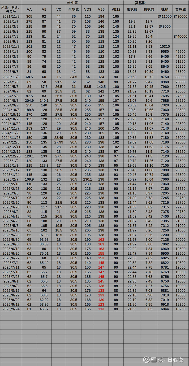 $新和成(SZ002001)$ $梅花生物(SH600873)$ 补发,维生素、氨基酸、味精价格更新。