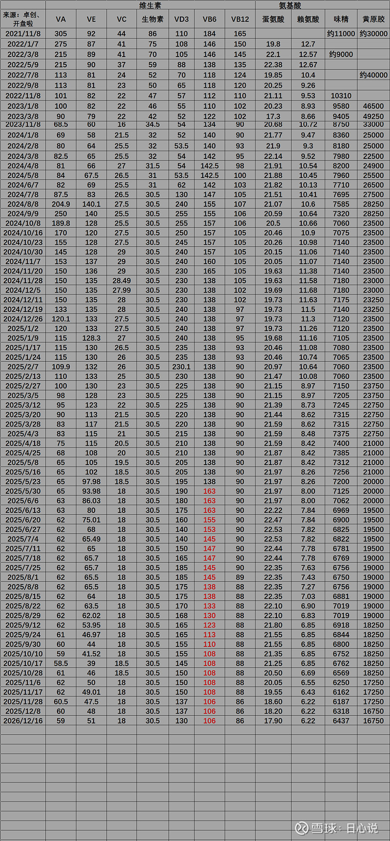 VA下跌,但是VE上涨。VC、生物素、VB6、VB12没动,VD3跌了。