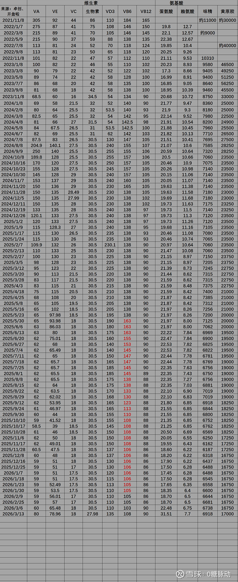 $新和成(SZ002001)$ $梅花生物(SH600873)$ 本周维生素、氨基酸、味精价格更新。