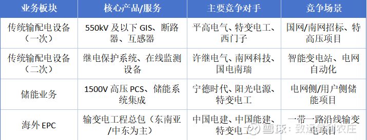 思源的业务结构从2019年“传统输配电为主(占比超80%)”逐步升级为2025H1“传统输配电(55%)+储能(20%)+海外EPC(25%)”的均衡结构,不同板块对应不同竞争群体: