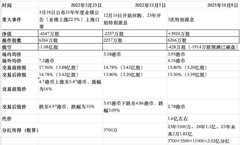 做空利润已然落袋:FSG在5港元以上建立的空头头寸,在股价跌至3港元以下后,已经获利了结,赚取了巨额差价。分红资金覆盖成本:根据估算,FSG在几年间从公司获得的分红总额高达2.02亿港元。而它此次高价增持的总代价约为1.6亿港元。这意味着,FSG几乎是在用从公司吃到的分红,零成本地买回了更多的股权。