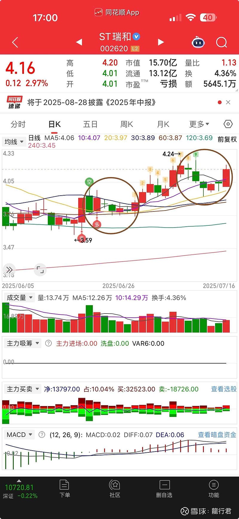 $ST瑞和(SZ002620)$ 是不是时间周期、图形、均线分布都很有规律,就等爆发了!股本3.77亿,每股公积金有3.24元,重整送股能装体量大的优质产业投资人和财务投资人。就这一点想象力空间就足够大。