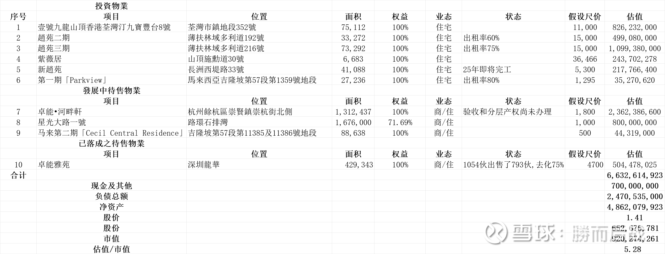 整体上,物业价值评估为66亿,公司内在价值为49亿,大概是目前市值的5.3倍。