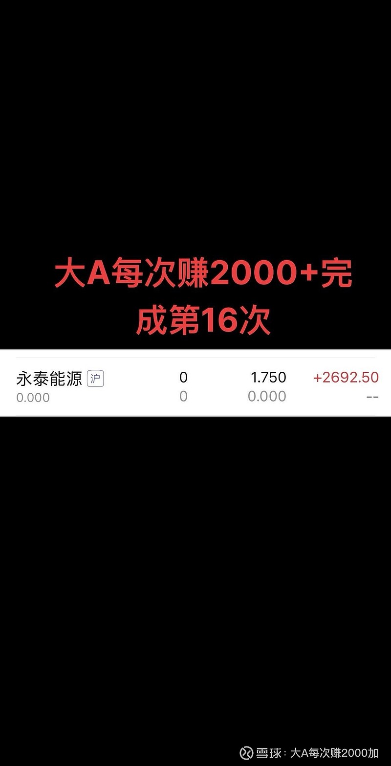 大A每次赚2000+完成第16次;煤炭概念;低价股;盈利2692.50!