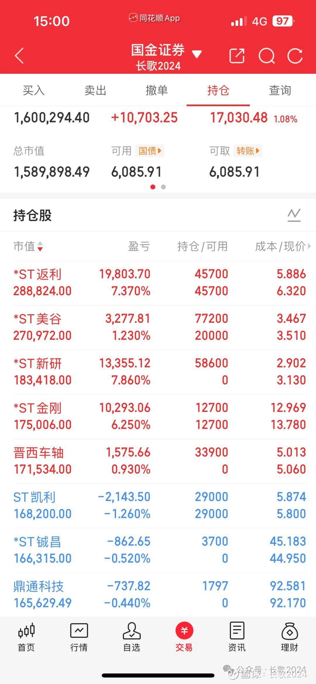 今天继续布局了业绩股,同时新开了新研、铖昌。$ST板块(BK0400)$ $*S