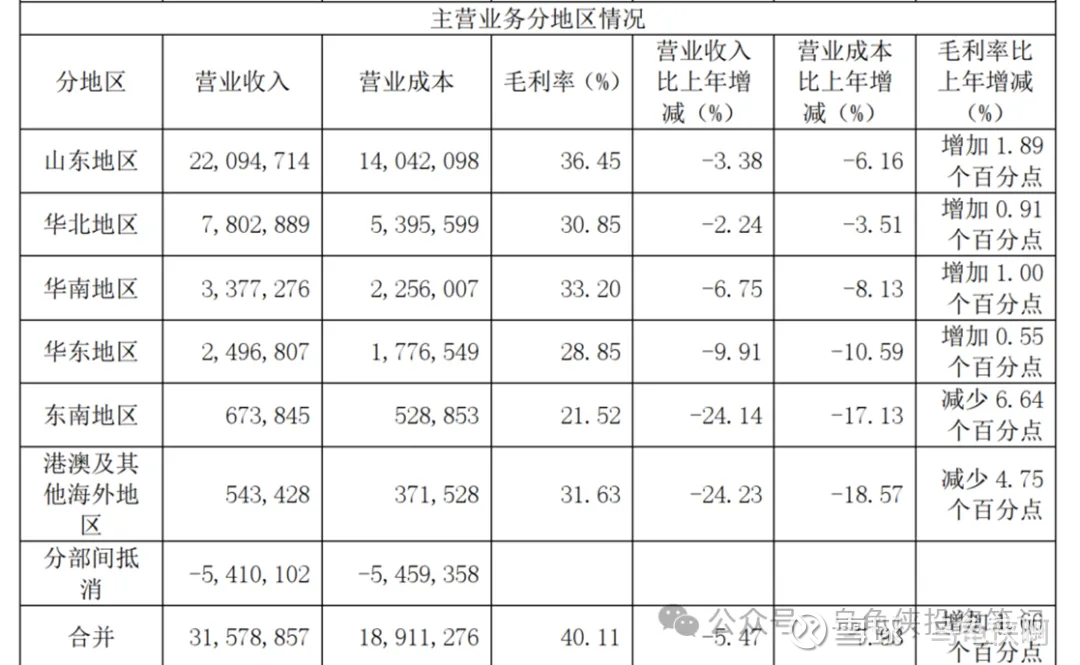 山东是公司产品的主要销售地,营业收入为220.95亿, 占公司总营收(321.4亿元)的68.75%,毛利率也是全国最高。