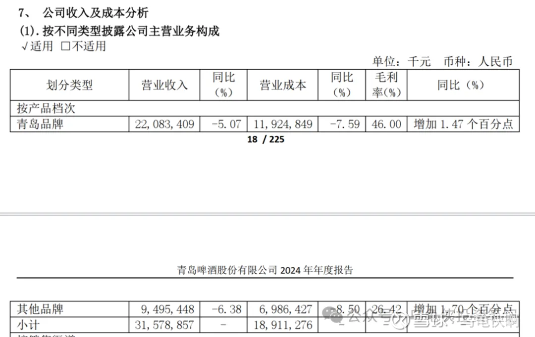青岛品牌2024年销量434万千升,营业收入220.83亿,平均5.09元/升。崂山和汉斯品牌销量320万千升,营业收入94.95亿,平均2.97元/升。