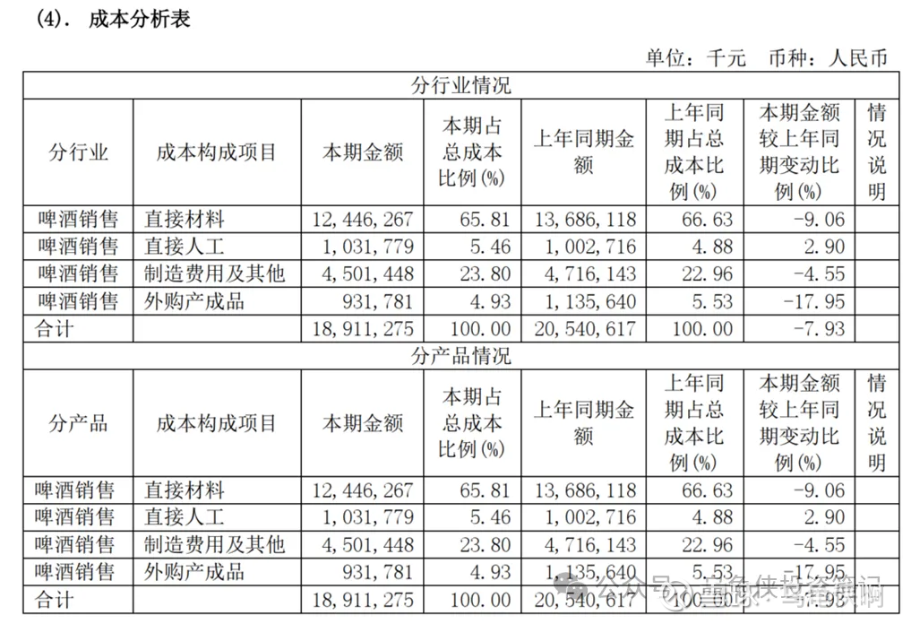 啤酒的主要成本是生产材料。主要材料包括大麦、包装材料和其他物料等。其中大麦的采购来源以进口为主,包装物料由国内采购。
