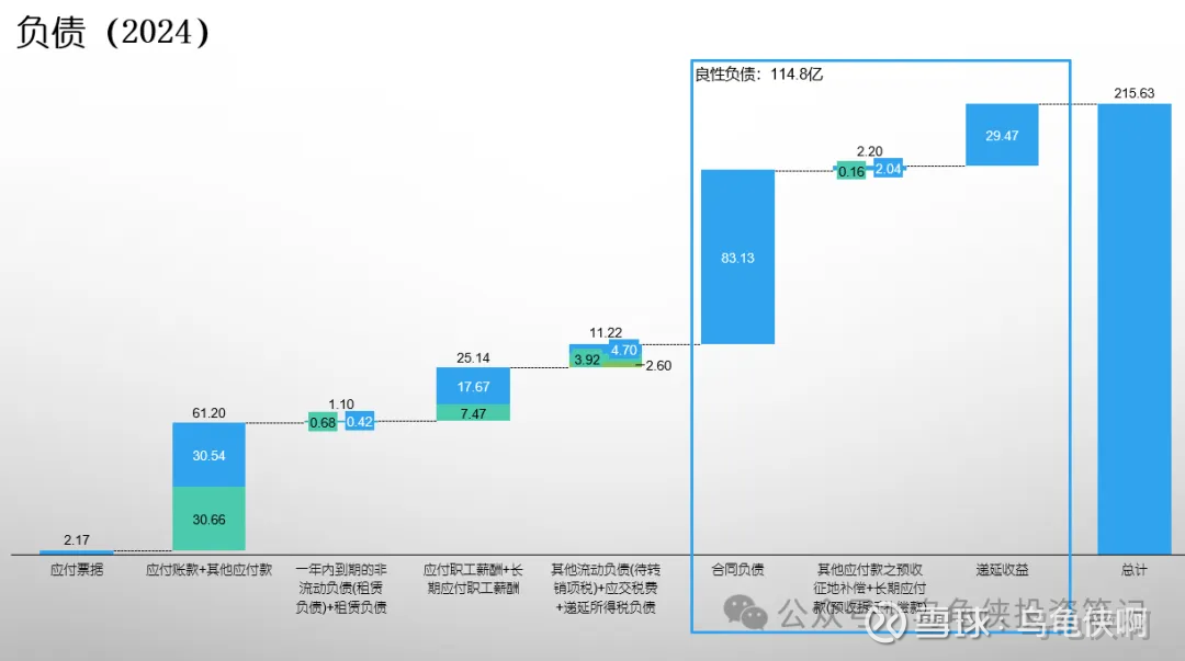 良性负债114.8亿,占215亿总负债的50%以上。其中合同负债83亿。