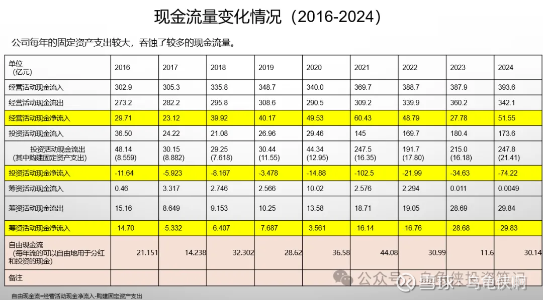 但是公司每年的固定资产支出还是挺吓人的。刚说的70多亿的设备,居然每年要花15-20亿进行维护,导致自由现金流大大的减少。