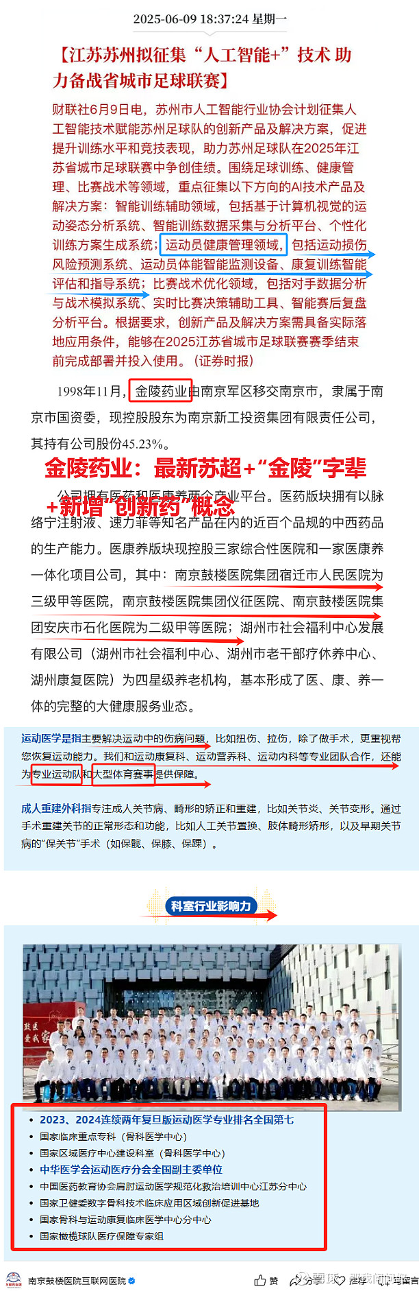 蹭上苏超的运动医学了,叠加“金陵”字辈,还新增创新药概念,明天应该能冲一冲了