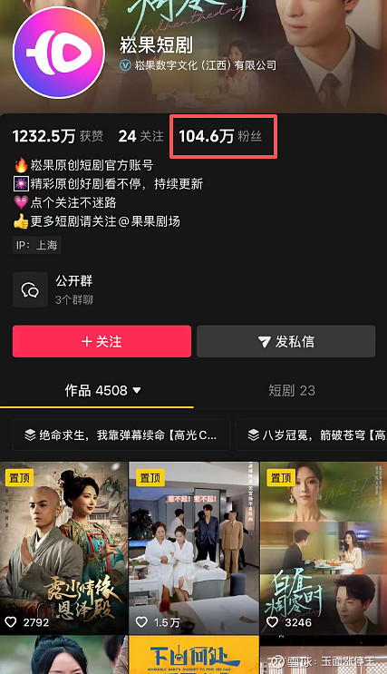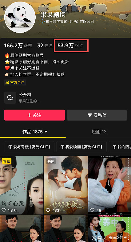 公司短剧目前已登录抖音崧果短剧、抖音果果剧场、微信小程序华阳剧院、视频号崧果小剧场等平台。仅抖音崧果短剧单一账号粉丝数就超百万。