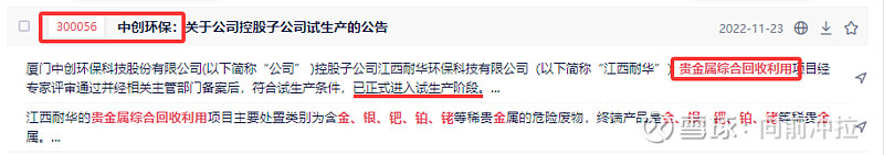中创环保(300056)金银钯贵金属回收+算力租赁