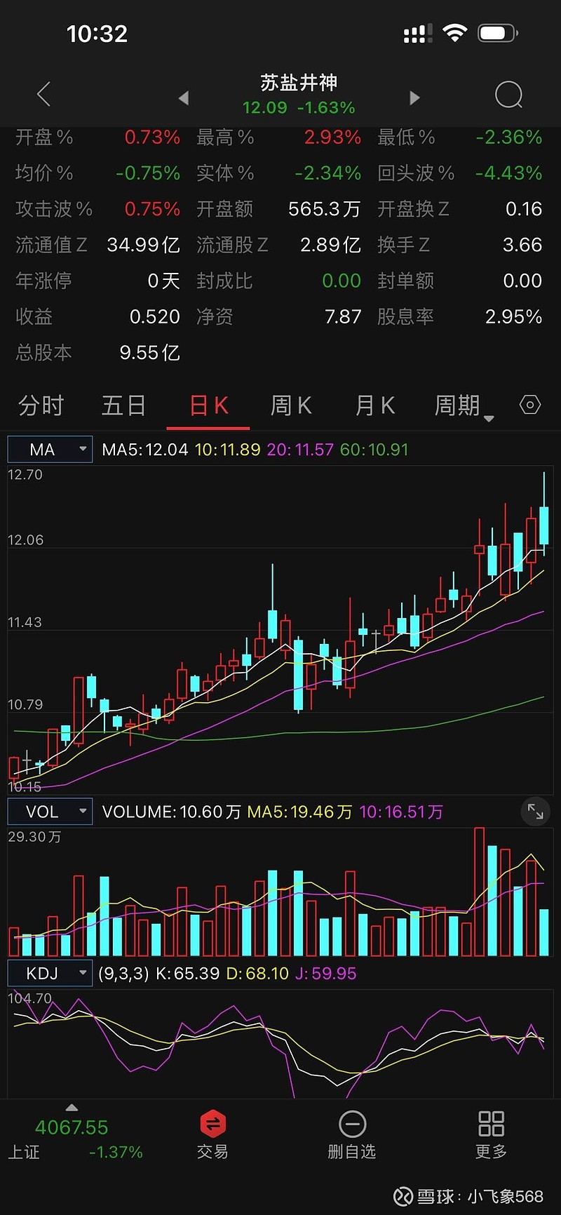 $苏盐井神(SH603299)$ (不推荐)有人看懂了苏盐的走势吗?K线图一红一绿,红绿交叉有序,但总体走势倒是往上的,这种就是量化搞的图形吗?这种图形不好看,不美,但长期投资者只能让短线交易者随便画图吧,能怎么样呢?