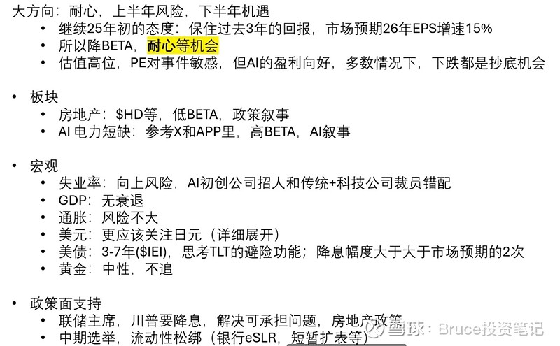 Talk君的预判26年还是偏震荡,预期收益在5%-10%,上半年便谨慎,中期选举后风险降低,上涨概率较大,美元与美股大致呈负相关,日元与美股呈正相关,但近期呈负相关,且日元接近160水日本央行底线,所以需要提防美元更关注日元的升值风险。