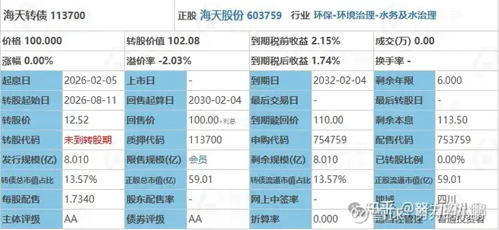 ★ 海天转债申购分析: