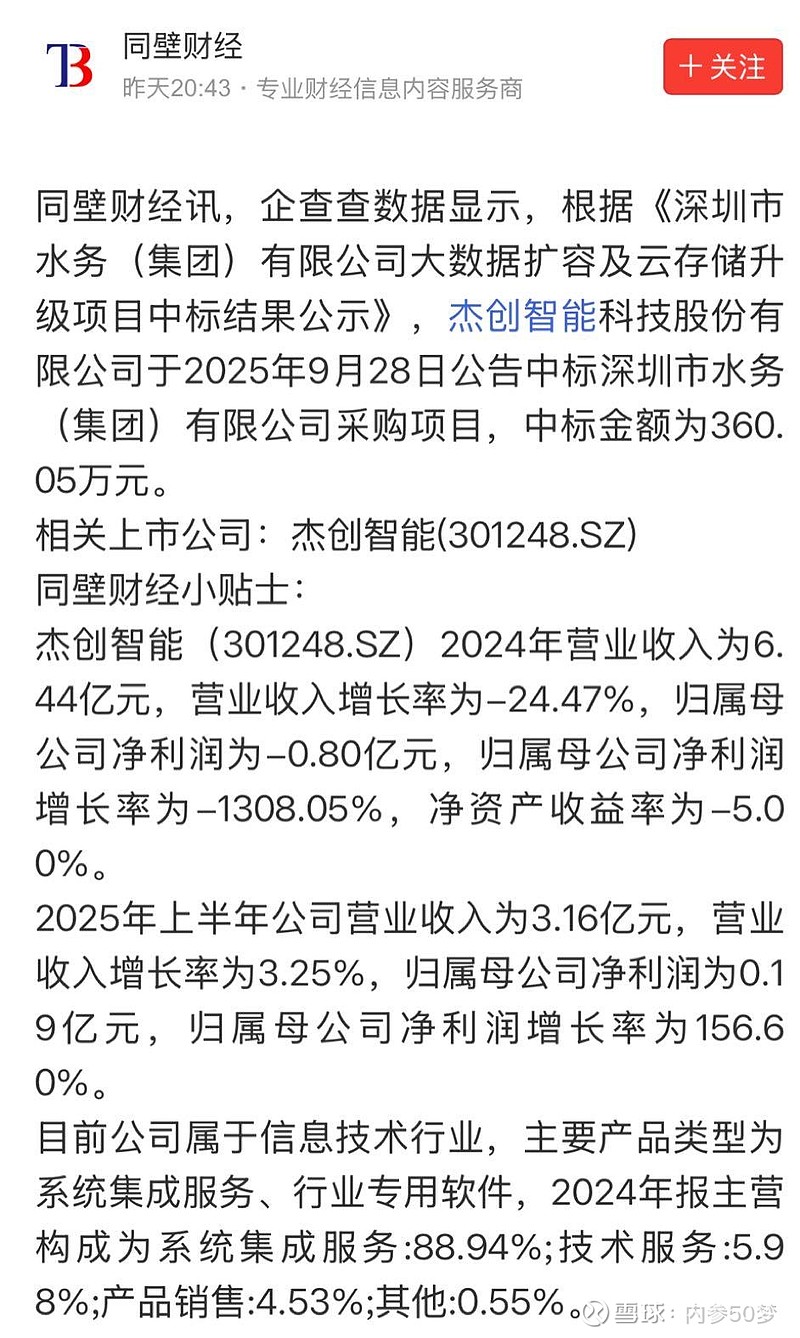 根据《深圳市水务(集团)有限公司大数据扩容及云存储升级项目中标结果公示》,杰创智能科技股份有限公司于2025年9月28日公告中标深圳市水务(集团)有限公司采购项目,中标金额为360.05万元。#摩尔线程#
