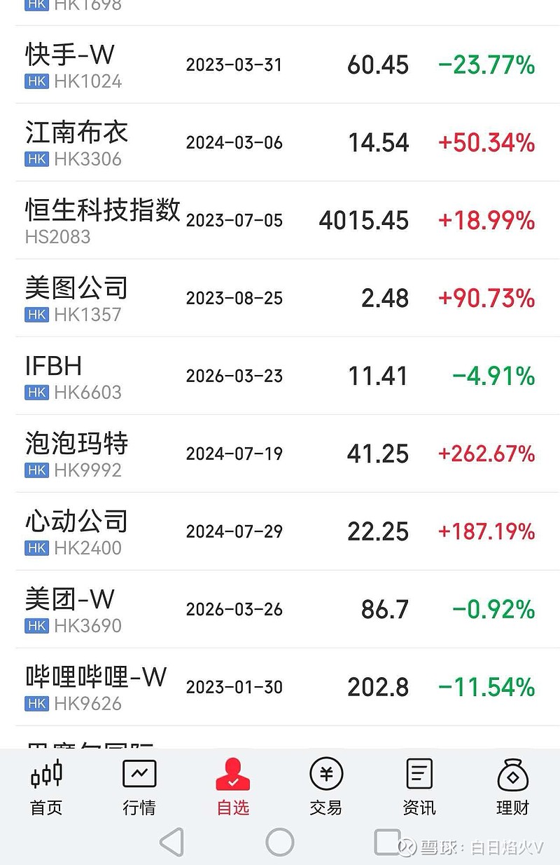 $快手-W(01024)$ $哔哩哔哩-W(09626)$ 当你买的股票的故事很漂亮、人人都知道它的名字,股票声名鹊起、一堆散户,市值也超过500亿,真的很难赚钱。 拿三年就一场空,还得倒贴。所以,今年我增加了几个市值100亿以下、没有太多故事甚至声名狼藉的港股通公司比如IFBH公司(椰子水——全球健康饮用水需求)、医脉通(医生社区论坛——创新药新品上市推广阵地)、固生堂(中医连锁——长期老龄化需求)。