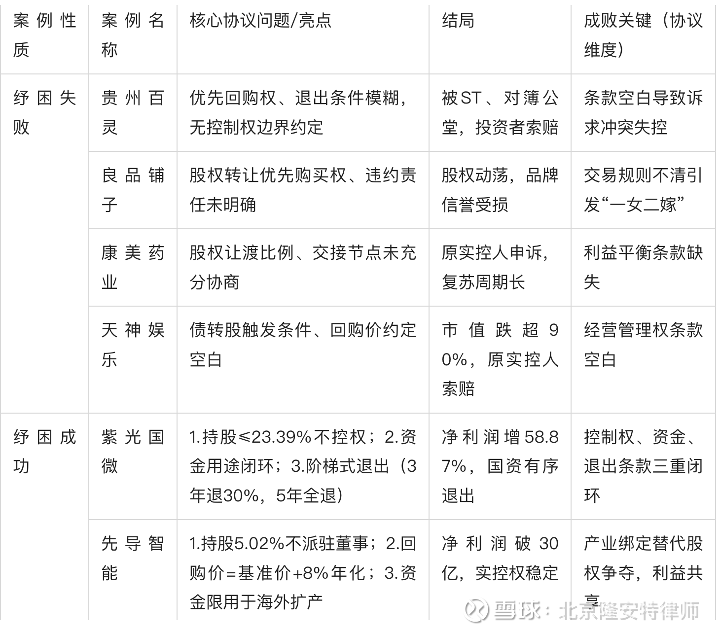 贵州百灵仅用“不谋求控制权”的口头式承诺,没约定持股上限、管理权限;而紫光国微直接量化“持股≤23.39%”“不委派董事”,先导智能明确“不干预生产经营”——这种“数字式约定”,从根源上杜绝了“夺权”可能。