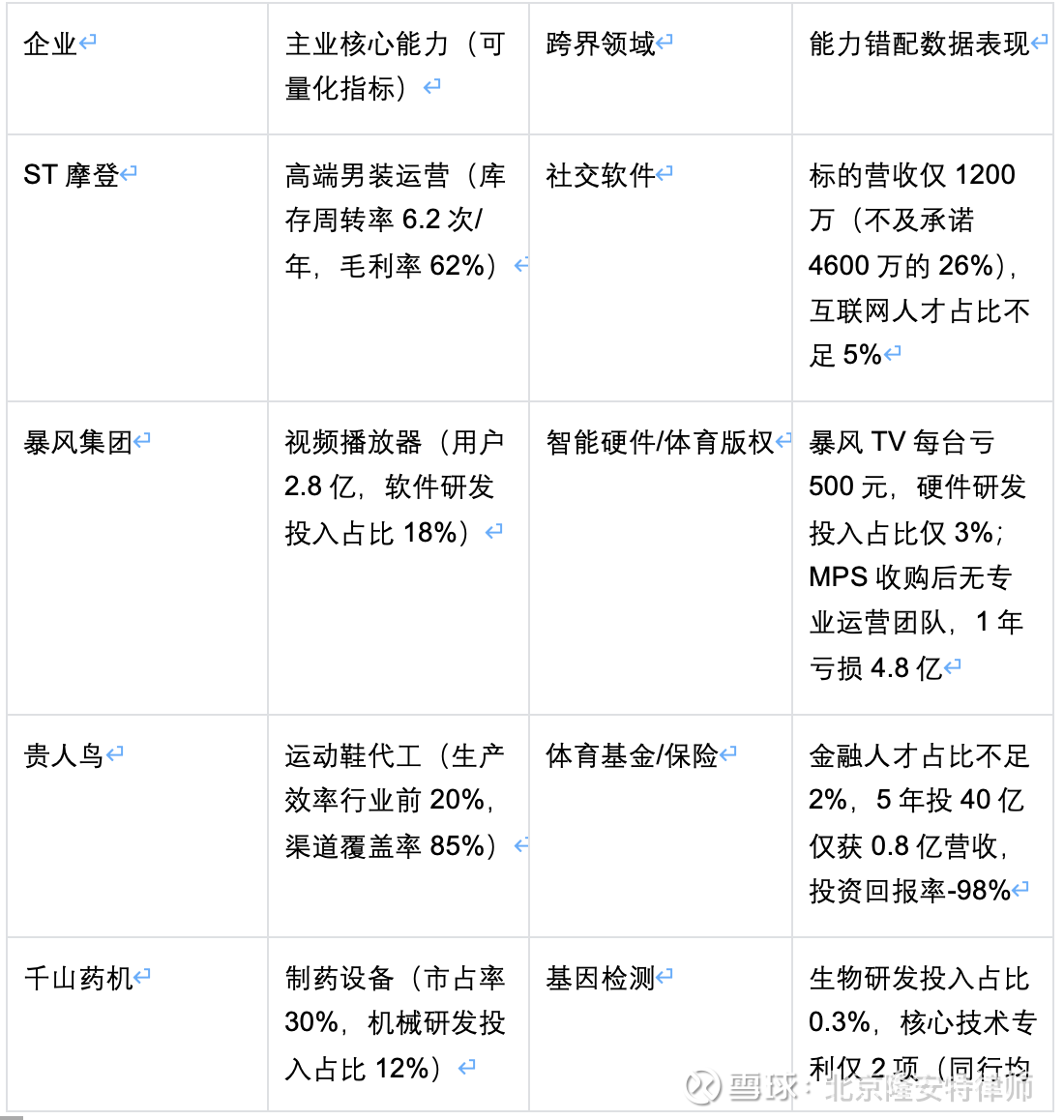 所有企业的跨界惨败,本质是“行业能力边界”的失守。ST摩登的悲剧极具代表性:其主业是高端男装,核心能力是商场渠道谈判、西装工艺把控(上市前库存周转率6.2次/年,远超行业均值),但林某某面对电商冲击,没深耕“高端定制+线下体验”的差异化路径,反而砸4.9亿收购社交软件——这一领域需要的用户运营、算法推荐能力,与服装行业完全无关,最终标的营收仅1200万,不及承诺的1/3。
