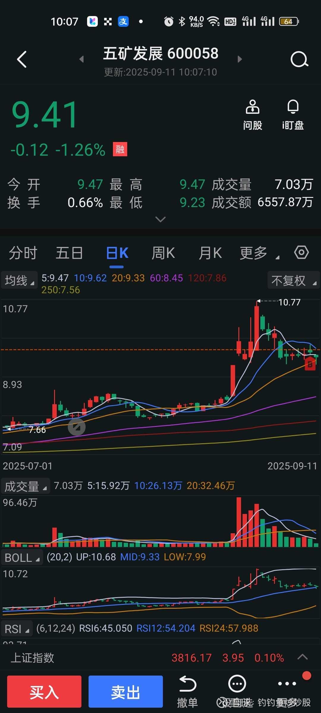 五矿发展 600058,上涨后小幅回调并获支撑,昨天在其他交易结束之后,买入这个,后续会怎样?,会继续延续上涨吗?