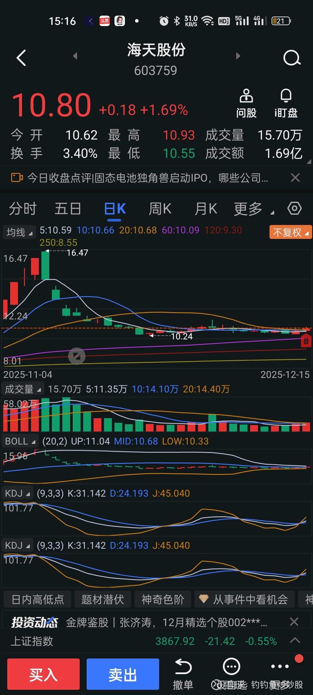 海天股份 603759,上涨后回调并获支撑,,后续会涨吗?