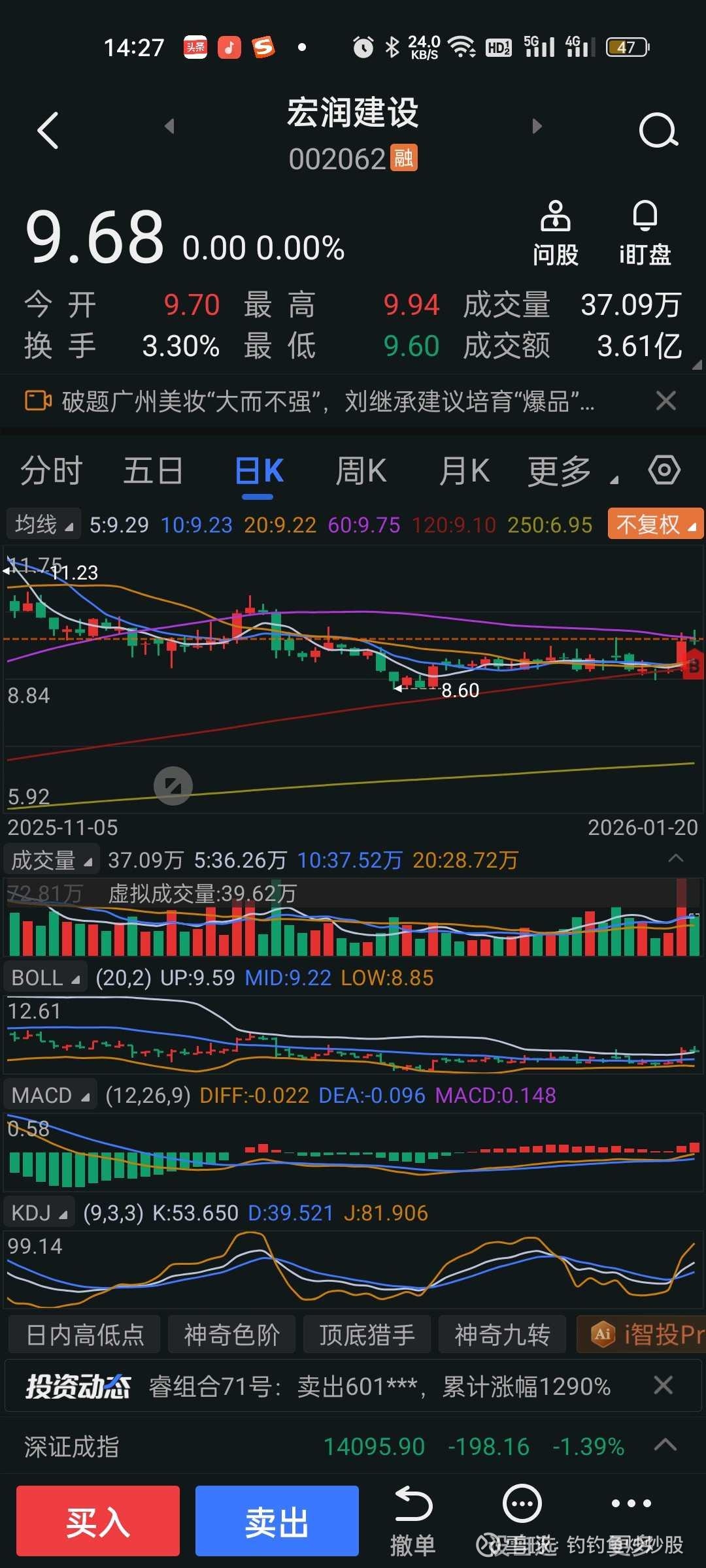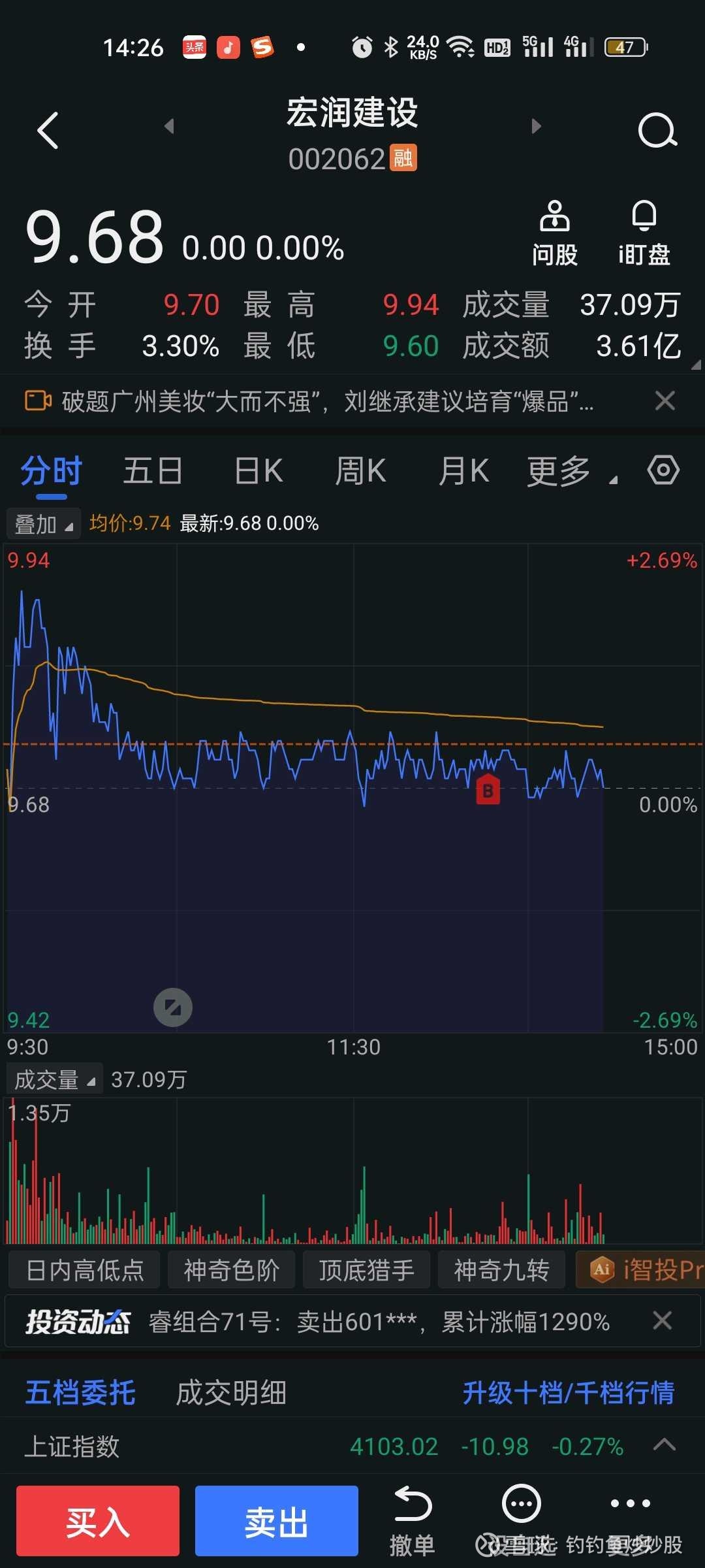 宏润建设 002062,上涨后小幅回调,平了其它仓位,释放了弹药。,又开仓了这个,,, 感觉会弹一弹