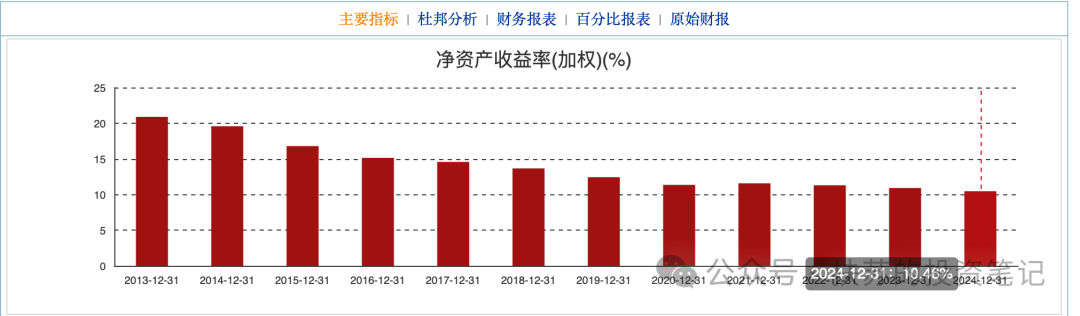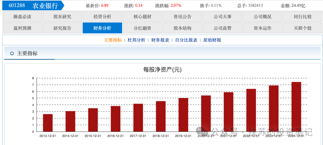 我们可以看出,在这样的公式拆解下,你就可以理解PB破净的缘由。本质上,PB就是在折价,试图弥补市场认为不够安全的补充,下图为农业银行12年的ROE水平