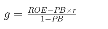公式里的 PB 是企业的合理市净率,说白了就是 “你愿意为企业 1 块钱的净资产,花几块钱买”,现实中这个数肯定是有限的、有意义的正数(比如 1.7 倍、6 倍,不可能是无穷大,也不可能是负数),但 r≤g 时,分母出问题了,分两种情况说: