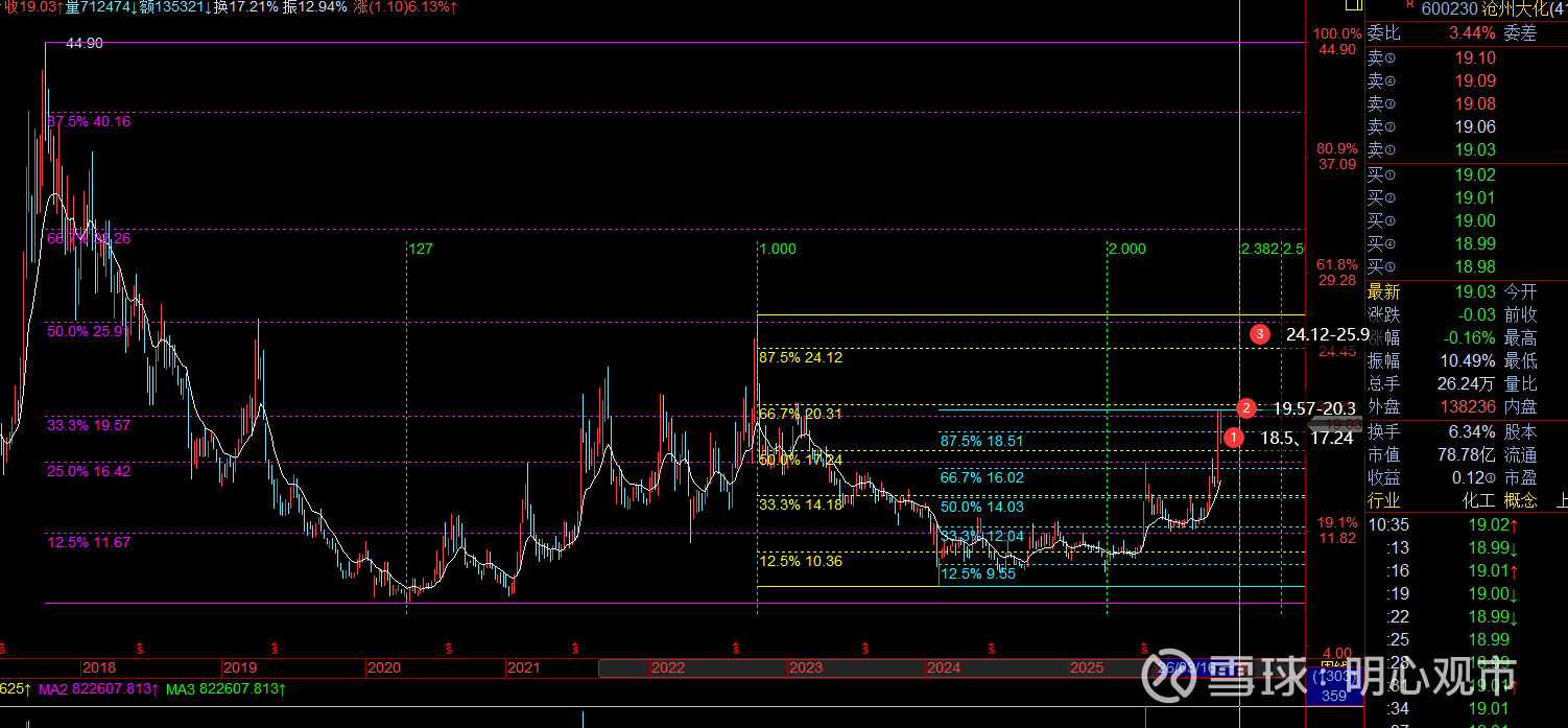 回复@明心观市: 老师,帮忙看一下长亮科技怎么样?有上涨空间吗//@明心观市:回复@银海金鲸1380796:$沧州大化(SH600230)$ 目前在消化周三分价格区19.57-20.31,日趋势维持在多空线上,叠加百分比支撑显示,当前支撑18.5上,维持加速,能突破20.3,则波段空间 有望打开看24.12、25.91;短风控18.5,波段风控可参考日白线17.5查看图片