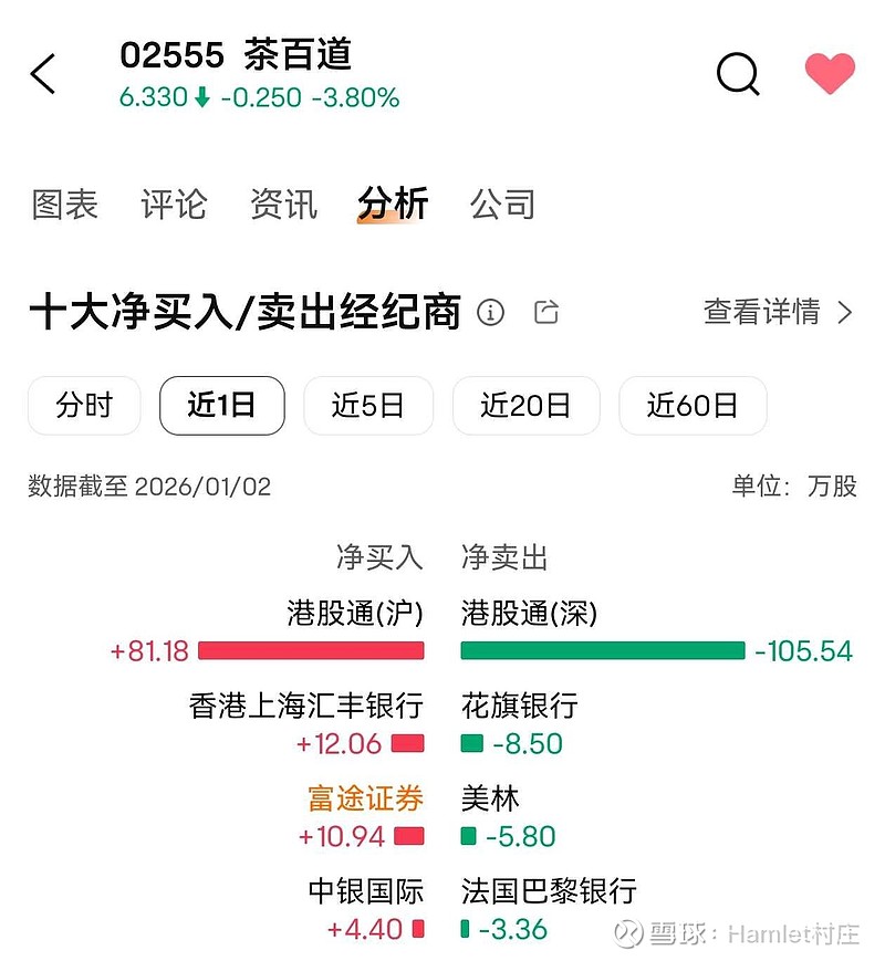$茶百道(02555)$100W股就能把股价砸奔溃看来这票没有主力都没人来维护股价难道大股东一点都不关注吗-这么砸很快就要砸退通了问题这票流通市值15亿不到吧其他份额不打算上市了吗有点不相信大股东现在就敢破罐子破摔肯定还是要拉一波行情才能解禁其他份额