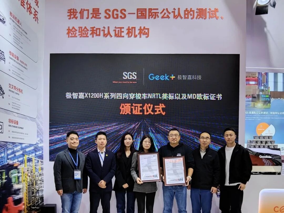 近日,极智嘉新一代X1200H系列四向穿梭车正式通过国际公认的测试、检验和认证机构SGS严格审核,一举获得NRTL美标和CE欧标两大认证,充分印证了其产品质量与安全性的硬实力,显著提升其在全球的竞争力与影响力,助力全球仓储智能化升级。