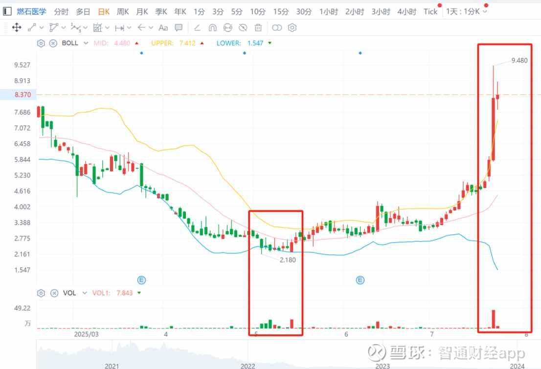 在指数向上修复的同时,燃石医学(BNR.US)$燃石医学(BNR)$ 的股价也在此期间止跌并快速反弹。尤其是7月以来,截至7月24日,燃石医学股价单月累涨幅度高达164.87%,最大涨幅则达到202.91%,大幅跑赢指数。