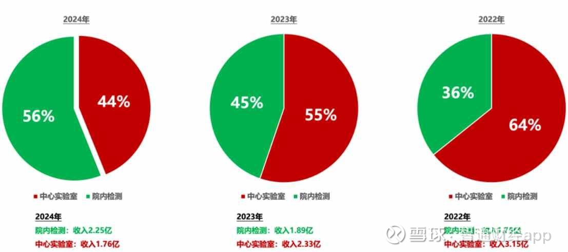 自2022年下半年以来,燃石开始大力推进院内渠道,院内和院外业务的营收差距开始逐渐缩小。到2023年Q3季度,公司院内渠道收入首次超过院外渠道。此后,公司的院内收入连续超过院外收入,并最终带动其整体的检测收入结构在2024年实现了首次年度扭转。