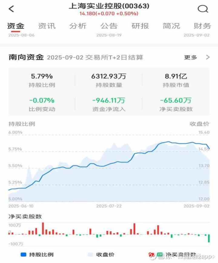 智通财经 APP 注意到,上海实业控股股价自 2022 年 10 月股价触及 5.18 港元低点后,开启上行通道,截至 2025 年 8 月最高上涨至 15.32 港元,期间最大涨幅达 195.8%。资金层面的认可同样明确,今年以来南向资金对上海实业控股持仓整体呈震荡上行态势,8 月持股数量一度突破 6400 万股,持股比例升至 5.9%。股价与资金的双重向好,本质是市场用 “真金白银” 投票,认可公司穿越周期的长期价值。