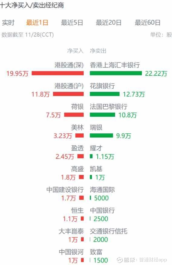 据智通财经APP观察,近5日,微创机器人的卖方席位前五位分别为花旗银行、港股通(沪)、香港上海汇丰银行、东吴和美林,分别卖出131.35万股、66.65万股、53.16万股、15.50万股及4.47万股。而买方来看,港股通(深)为最大买方,买入97.70万股。而在11月28日,港股通(深)和港股通(沪)便已是微创机器人的单日最大净买入方,分别买入19.95万股和11.80万股。