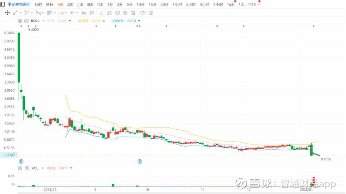 直到今年 1 月 9 日,平安生物医药才发布一则公告,宣布了一项 3000 万美元的非约束性现金投资计划,并计划以 6000 万美元收购未来生物科技公司。这一消息,直接推动了公司股价在 1 月 12 日大幅收涨 41.85%,但该消息炒作仅持续了一个交易日。1 月 13 日和 1 日,平安生物医药股价分别收跌 16.88% 和 7.25%,再次将公司股价拉低至 0.2 美元附近,较当初的发行价跌去 96.67%,也进一步拉开了公司与上市合规目标的距离。