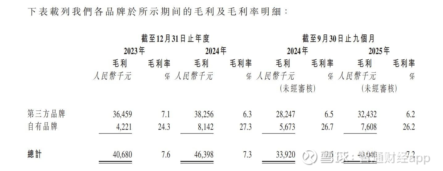 据招股书显示,易买工品毛利率的下滑主要是因为第三方品牌毛利率持续下降的拖累。2023、2024年,易买工品第三方品牌的毛利率分别为7.1%、6.3%,至2025年前三季度进一步下降至6.2%,而2024年同期为6.5%。