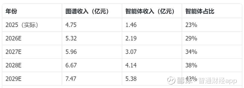 确认了曲线的质量,下一个问题自然浮出水面:按照这个速度,智能体什么时候能超过图谱,成为公司的第一大业务?