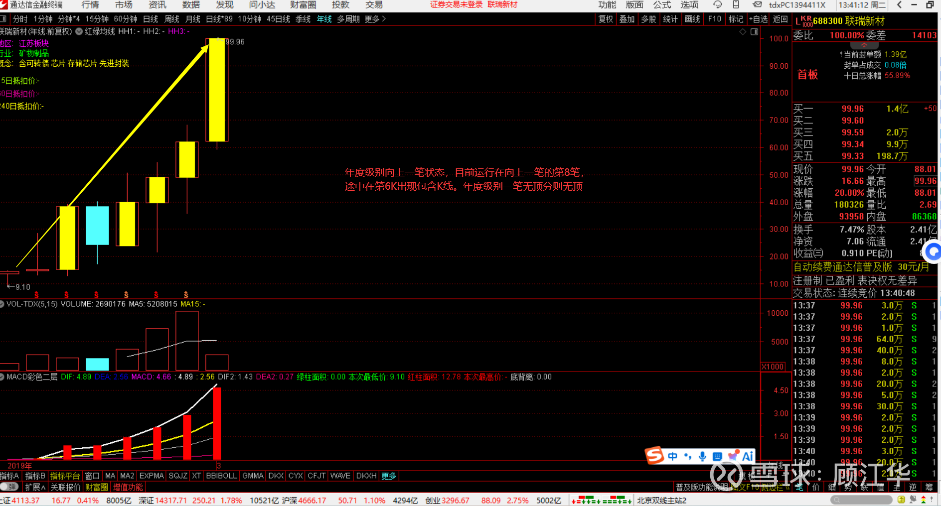年度级别向上一笔,无顶分则无顶,对该上一笔,在月级别上涨进程做跟踪。