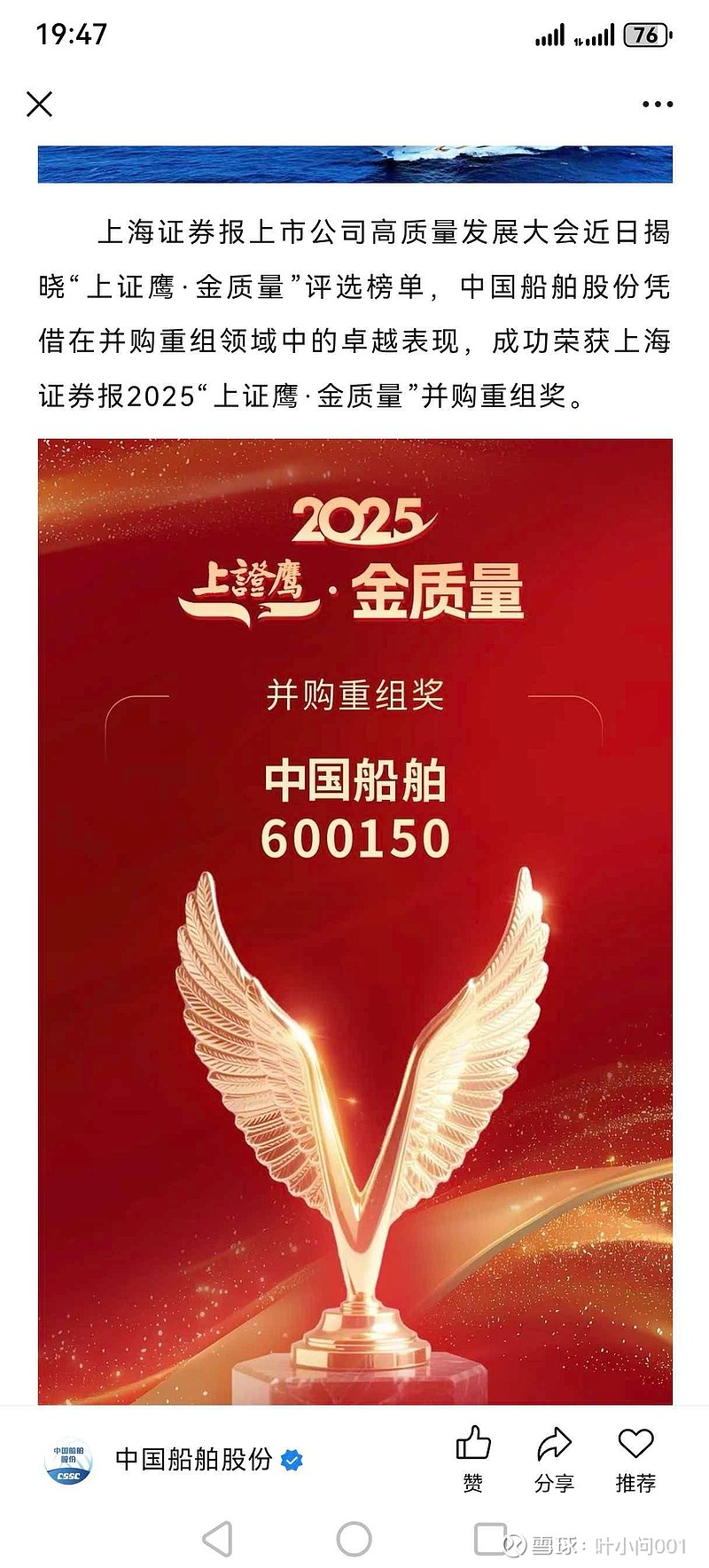 $中国船舶(SH600150)$