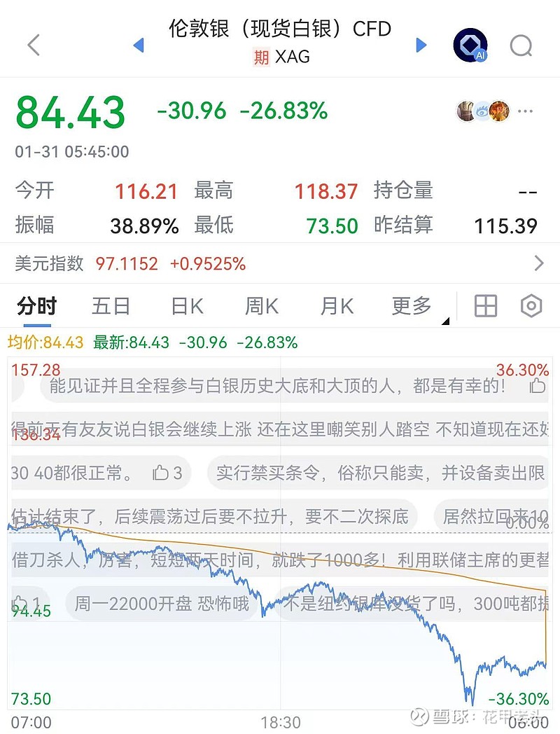 什么意思呢,期货是带杠杆的,以我对于这次白银的跌幅理解,全世界几乎赚了很久白银钱的期货投资者,在这一夜,几乎全部爆仓,换句话说:血本无归。