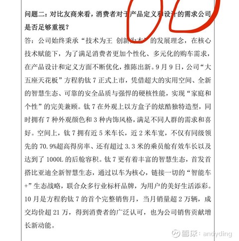等冲击的内在(不是外部因素)原因,马上采取有针对性的内部变革,大幅提升产品力和公司内部经营效率,这两方面比亚迪的问题都非常明显,网上几乎形成了共识,近期的机构投资者也提出来了。