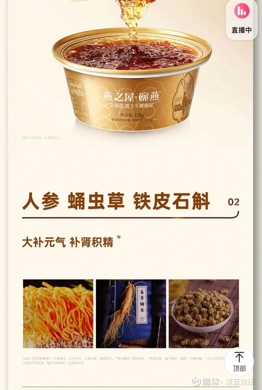燕之屋解释称,“男人的燕窝”是指燕之屋燕窝研究院专为男士研发的燕窝。