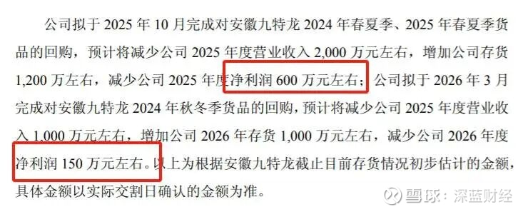 具体来看,货品回购分两批次完成,截止日期分别为 2025 年 10 月和 2026 年 3 月;此次交易合计将减少公司营业收入约 3000 万元,增加存货 2200 万元,且预计合计减少公司净利润约 750 万元。