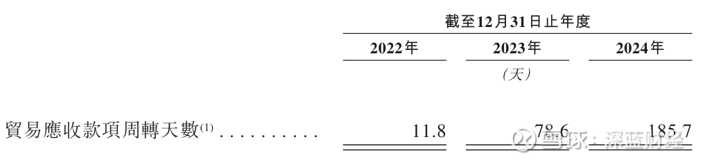 据此计算,海辰储能2024年的贸易应收款项占其总收入的比例高达69.5%,这也意味着该公司收入金额中有近七成将被用作赊账。同时,海辰储能的应收账款周转天数也由2022年的11.8天延长至2024年的185.7天,回款风险高企。
