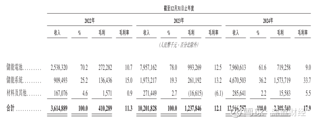 2022年、2023年和2024年(即“报告期”),海辰储能分别实现归母净利润-17.77亿元、-19.63亿元和2.59亿元,于2024年实现扭亏为盈;经调整净利润分别为-2988.7万元、1.61亿元和12.55亿元。