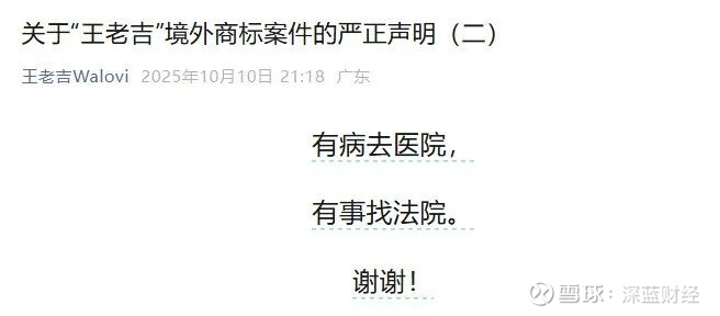 随后,王老吉则用一句“有病去医院,有事找法院。谢谢!”简短回应,火药味十足。