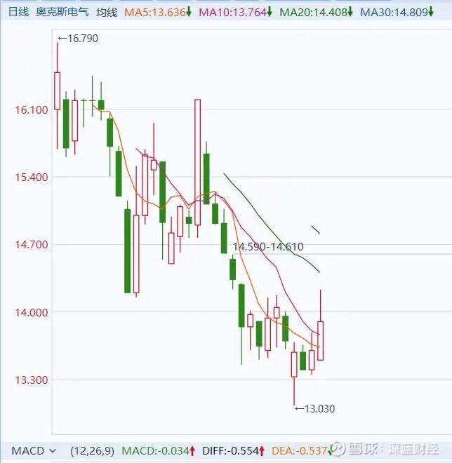 上市至今,奥克斯电气股价持续阴跌。截至今日收盘,股价报收13.87港元/股。相较于发行价,破发幅度达到20%。