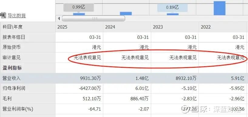 截至11月11日收盘,爱高集团最新总市值仅1.51亿元。截至今年3月31日的财年,其营业收入为9931万元,毛利512万元,归母净利润-6427万元。而且,从2022财年至2025财年,审计机构对爱高集团给出的均为“无法表示意见”审计报告。